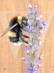 ID: 53781 Bumble Bee On Lavender Oil On Wood 5x7Picture Sold