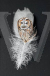 ID: 53711 Mini Tawny Acrylic/feathers 7 x 5 x 2Picture Sold