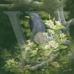 ID: 53328 Blackbird & Primroses Acrylics 11 1/2 x 11 1/2£495 Reserve Picture